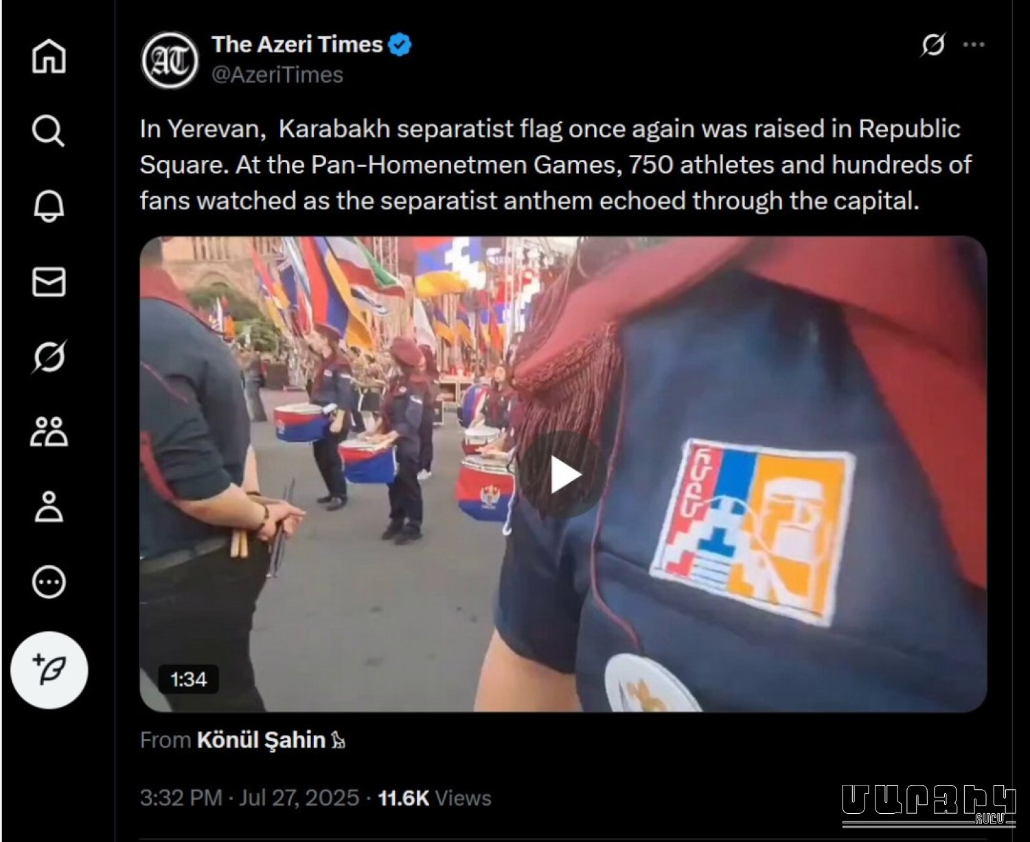 Մարզախաղերուն արձագանգեց մինչեւ իսկ The Azeri Times-ը… դատապարտելով բացման հանդիսութեան «Անջատողական» Արցախի դրօշին ծածանումը եւ քայլերգին հնչումը մայրաքաղաք Երեւանի «Հանրապետութեան» հրապարակին վրայ։