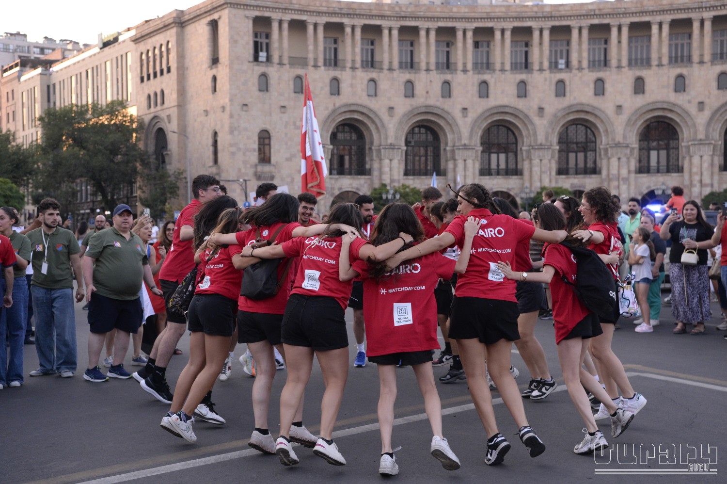 ԿՐԿՆԱԿԻ ՎԱՅԵԼՔ- Մարզախաղերու վեցերորդ օրը, Ծիծեռնակաբերդ, Եռաբլուր եւ Ս. Էջմիածին այցելութենէն ետք, մարզական պատուիրակութիւններ եւ պատասխանատուներ կէսօրուան ճաշի համար ժամադրավայր ունեցան «Մեկերեան կարպետ»ի՝ ձեռագործ գորգերու պատրաստութեան, վերանորոգութեան եւ ցուցադրութեան կեդրոնը, Երեւանի Մատոյեան փողոց։